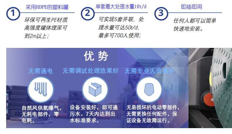 处理生活污水,可达到通电污水处理系统相同的出水标准,但无需通电!